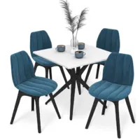стол+4 стула, квадратная, 90*90*75.2 см, материал: МДФ (столешница), микровелюр (обивка), пластик (опоры). Возможны дополнительные скидки : при заказе комплекта из нескольких наименований, при повторной покупке в нашем магазине